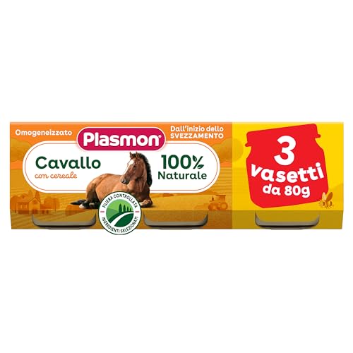 Plasmon Omogeneizzato Carne Cavallo e cereale 80g 24 Vasetti Con Carne Italiana, 100% naturale, senza amidi e sale aggiunti