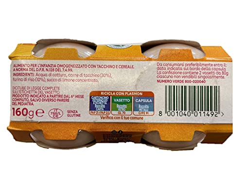 Plasmon Omogeneizzato Carne Tacchino e Cereale, 2 x 80g