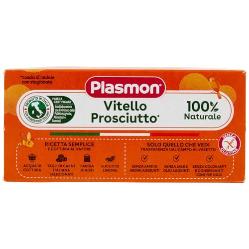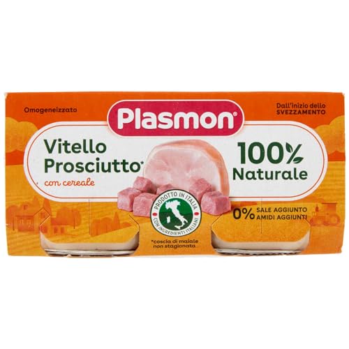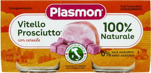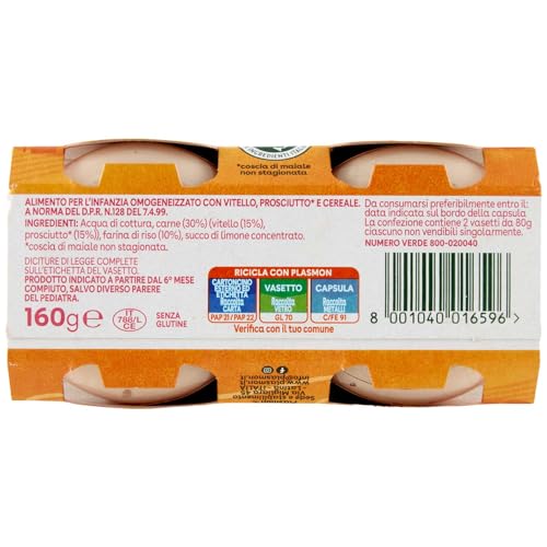 Plasmon Omogeneizzato Carne Vitello, prosciutto e cereale 2x80g Con Carne Italiana, 100% naturale, senza amidi e sale aggiunti