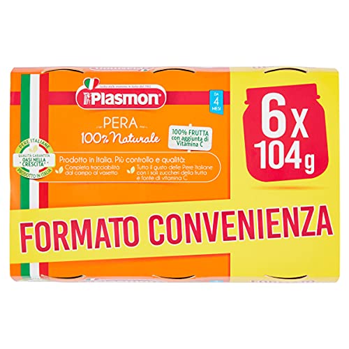 Plasmon Omogeneizzato Frutta Pera 6x104g, Vasetti con Pere Italiane 100% naturale, con aggiunta di Vitamina C
