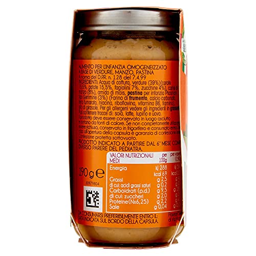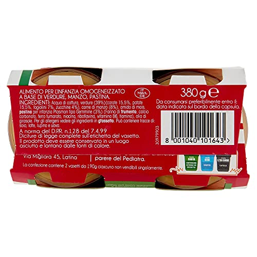 Plasmon Pappa Completa con Verdure, Manzo e Pastina 2x190g, 380 grammo, 1