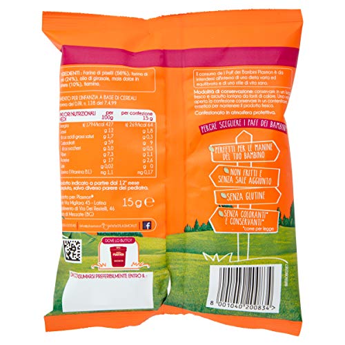 Plasmon Snack i Paff Piselli e Mais Dolce 15gr 5 Confezioni Snack non fritti e senza sale aggiunto, perfetti per le manine del tuo bambino