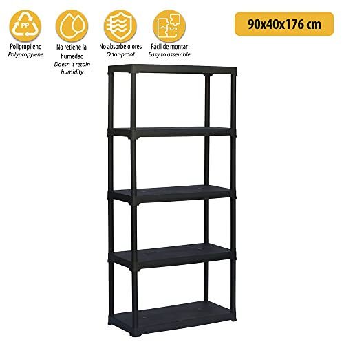 Art Plast T90/5/S Scaffale in Polipropilene a 5 Ripiani, Nero, 90x40x175,5 cm