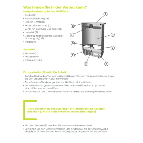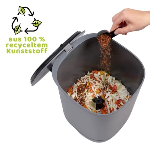 Plastia Bokashi Compostiera per Giardino e Cucina in plastica Riciclata 10,6 L - Starter Set con Miscela di fermentazione Bokashi 1 kg