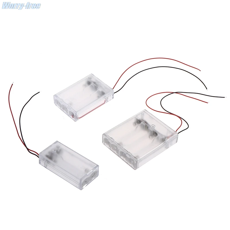 Plastic Transparent AA Power Battery Storage Case Box Holder 2 3 4 Slots With Wire Leads