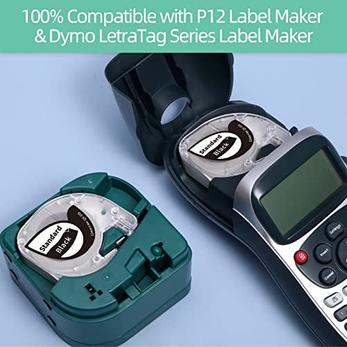 Compatible per Phomemo P12 Etichettatrice & Dymo LetraTag LT-100H, Dymo LetraTag LT-100H Plus, Dymo LetraTag LT-100T, Dymo LetraTag LT-100T Plus, Dymo LetraTag XM, DymoLetraTag XR, Dymo LetraTag QX50, Dymo LetraTag 200B.