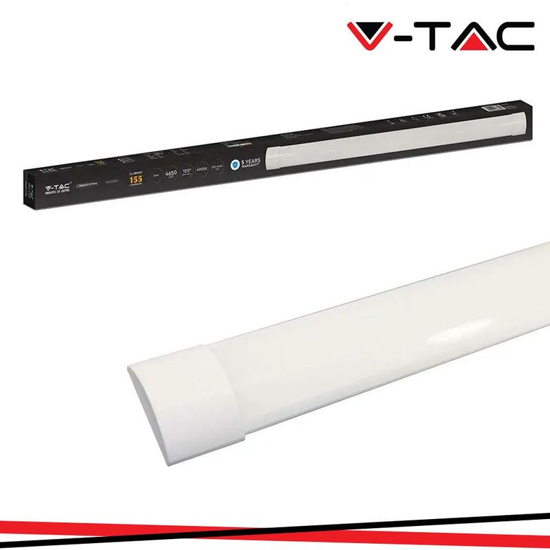 30W LED Plastica Plafoniera 120cm Fast Connect & Cable 155 lm/W 3000K SKU: 20362: VT: VT-8330 Specifiche tecniche Informazione generale Tipo LED SMD Vitamedia 25,000 ore Dati elettrici Potenza 30W Tensione AC: 220-240V Frequenza 50/60 Hz Fattore di potenza >0.9 Dati tecnici luce Fascio Luminoso° 120° Efficienza luminosa (lm/W) 155 lm/W Colore della luce Bianco caldo Temperatura di colore 3000K Flusso luminoso (lm) 4500 lm Indice di resa cromatica Ra >80 Dettagli corpo Colore Bianco Materiale Plastica Funzionalità IP Protezione IP20 Tempo innesco 100% 0.001 secondo Stabilità del colore Numero cicli accensione / spegnimento >15 000 Condizioni di lavoro Non adatto per luso in condizioni estreme. Condizioni normali di lavoro tra -20° + 40° Compatibilità Sensor Dimensione Dimensioni 1200 x 75 x 24 mm Dati del prodotto Numero dordine 20362 Numero di prodotto VT-8330 Pezzi per confezione 1 Peso 0,47 Volume 0,00308 Pezzi per scatola 30 Codice EAN 3800157663847 Certificati e norme Classe di