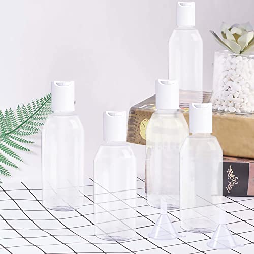 Set di 14 Plastica Trasparente Bottiglia da Viaggio da 50 ml Contenitori Viaggio Liquidi per Cosmetici Ricaricabili Flaconi da Viaggio Portatili per Aereo con 5 Piccoli imbuti e 4 Foglio di Etichette