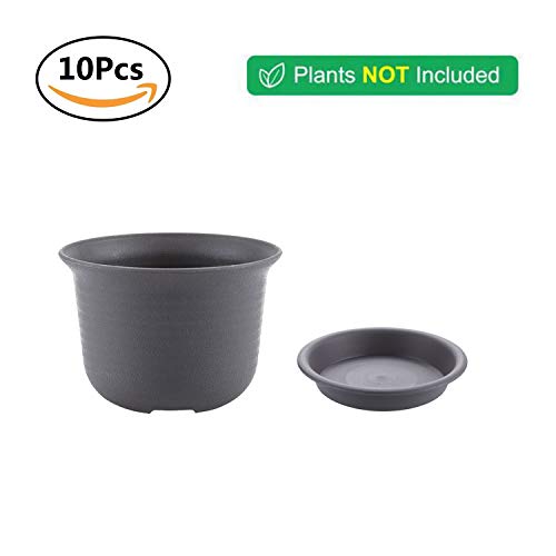 T4U 12.9CM Plastica Vivaio Vasi di Fiori con Piattino Grigio Scuro - Set di 10