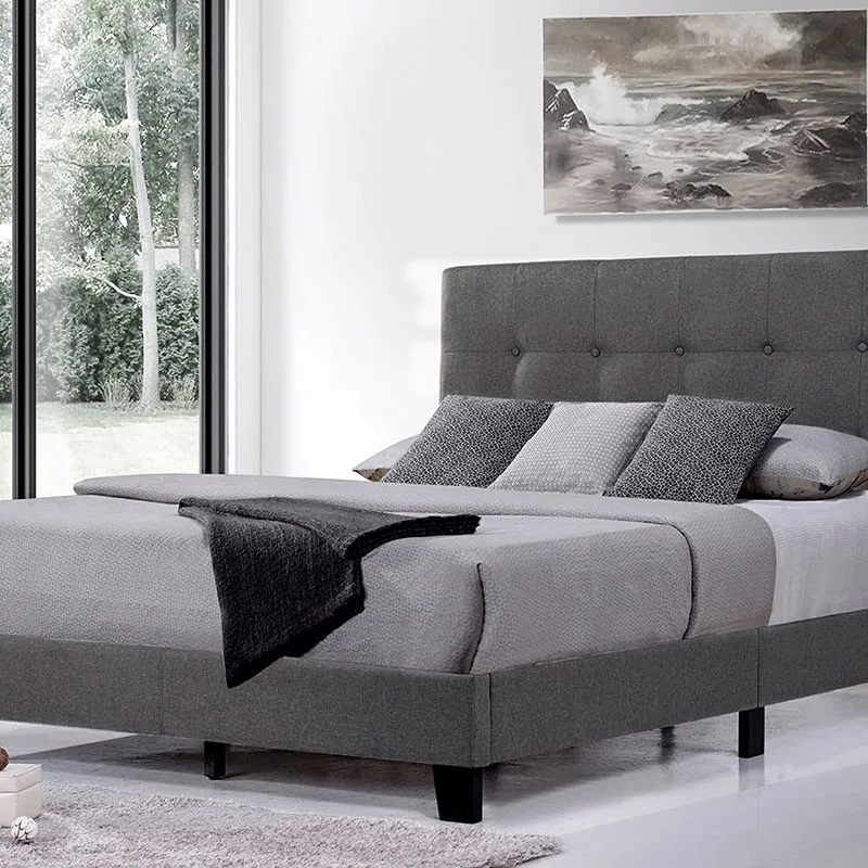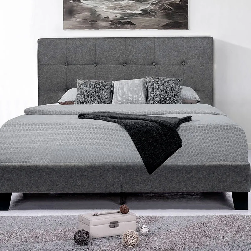 Platform Bed Frame Mattress Foundation with Wooden Slat Support and Tufted Headboard