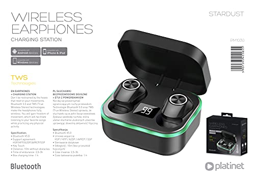Platinet auriculares bluetooth 5.0 + estuche carga pm1030 stardust