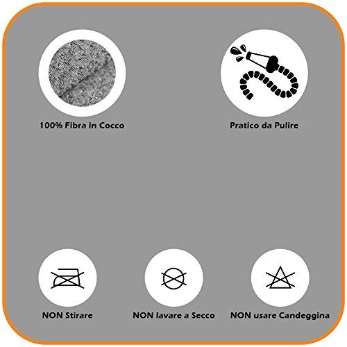 Telaio meccanico. 100% fibra naturale in cocco. Fondo in PVC. Colori naturali resistenti all'acqua