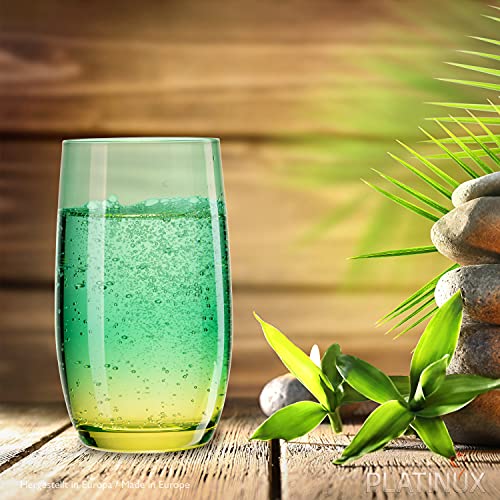 PLATINUX Set di 6 bicchieri per acqua, succo e longdrink, in vetro, colorati, 300 ml (massimo 370 ml), colore: verde e giallo