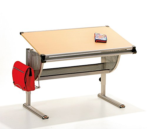 Plato Scrivania Con Piano Inclinabile, Regolabile In Altezza E Vano Porta Oggetti. Dim. 117X68,5X62-93H . Mdf Finitura Faggio E Metallo. Articolo In Kit.