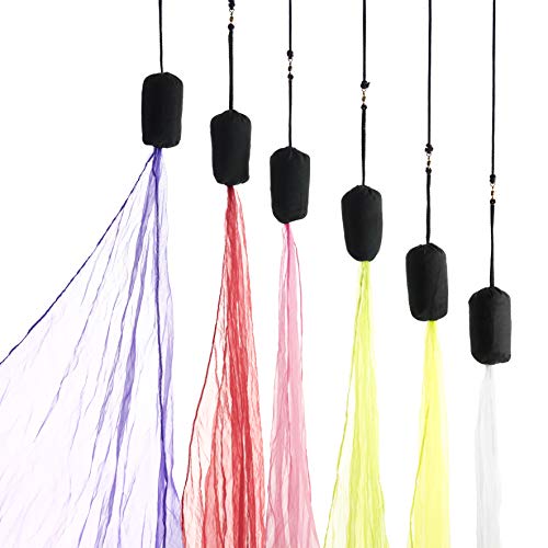 CARATTERISTICHE - Le due teste in morbido chiffon pesano 85 gr l'una. I foulard da 68 cm di lato, hanno tutti gli orli cuciti, sono disponibili in 6 colori e possono anche essere pizzicati sull'angolo per essere usati come FLAG POI. La robusta corda in nylon è 62 cm di lunghezza. Ogni set è confezionato in un sacchetto di cotone.