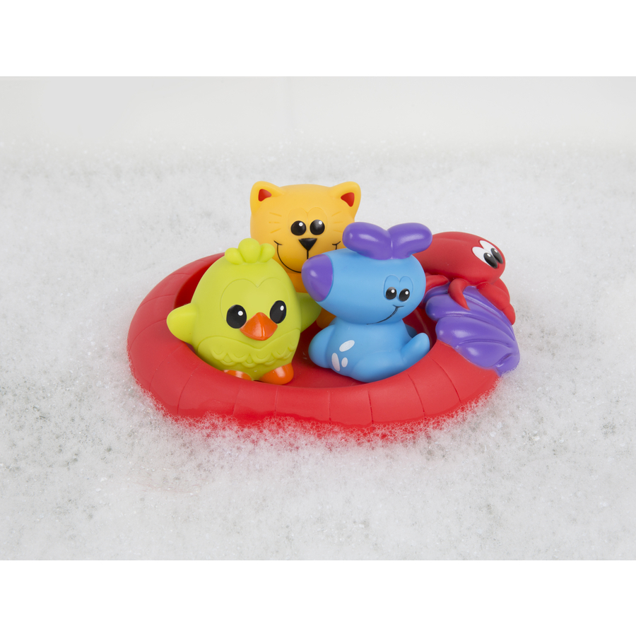 Dettagli del prodotto: Età: da 24 mesi Il gioco da bagno Swimming friends contiene 3 divertenti figure da bagno e una barchetta in cui i personaggi possono nuotare. Il punto di forza light del giocattolo da bagno è che gli stampi sono impermeabili e quindi l'acqua non può penetrare all'interno delle figure. In questo modo si evita la formazione di muffa all'interno delle figure e i bambini possono giocare a lungo con le coloratissime figure da bagno senza preoccuparsi. Dimensioni e peso: Dimensioni barca (lunghezza x larghezza x altezza): 6 x 17 x 13 cm Dimensioni gatto (lunghezza x larghezza x altezza): 6,5 x 5 x 4,5 cm Dimensioni cane (lunghezza x larghezza x altezza): 6 x 6 x 4,6 cm Dimensioni uccello (lunghezza x larghezza x altezza): 5,9 x 7 x 5,6 cm Peso: 0,219 kg Materiale e cura: Materiale: 98% PVC, 2% colore Istruzioni per la cura: non bollire. Lavare in acqua calda e sapone, risciacquare accuratamente con acqua pulita. Asciugare all'aria e conservare in un ambiente fresco e asciutto. Non esporre alla luce solare diretta o a temperature superiori a 40°Celsius. Avvertenze e istruzioni di sicurezza: Attenzione: non lasciare mai un bambino vicino all'acqua senza supervisione. Rimuovere tutti gli imballaggi prima dell'uso.