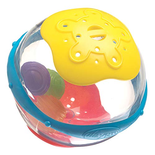 Playgro Palla per Bagnetto con Sonaglio, A Partire da 6 Mesi, Senza Bisfenolo A (BPS), Diametro: 10 cm, Giallo/Blu/Rosso, 40104