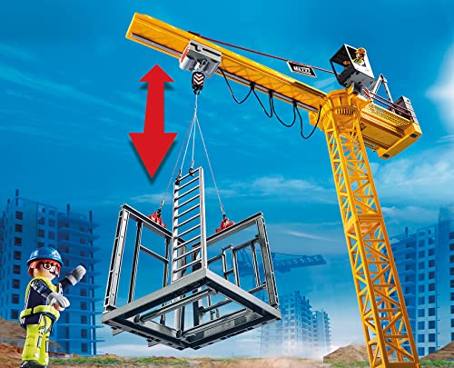 Divertimento per i costruttori laboriosi: Grande Gru PLAYMOBIL con telecomando, elementi costruttivi, travi d'acciaio, materiale da costruzione, operatore della gru e architetto per un gioco realistico