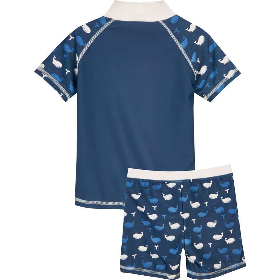 Dettagli prodotto: Set da bagno due pezzi Allover Whale Con collo alto e maniche raglan Cerniera sottopelle con protezione per il mento Inserto per pannolino fino alla taglia 86/92 inclusa Materiale ad asciugatura rapida Protezione UV 50+ secondo EN 13758-1 (test dell'Istituto Hohenstein n. 15.1.10.0286) Oeko-Tex Standard 100 - Classe 1 (test dell'Istituto Hohenstein n. 11.0.86164) Materiale e cura: Materiale: 82% poliammide, 18% elastan Lavabile fino a 30°C Non adatto all'asciugatura in asciugatrice
