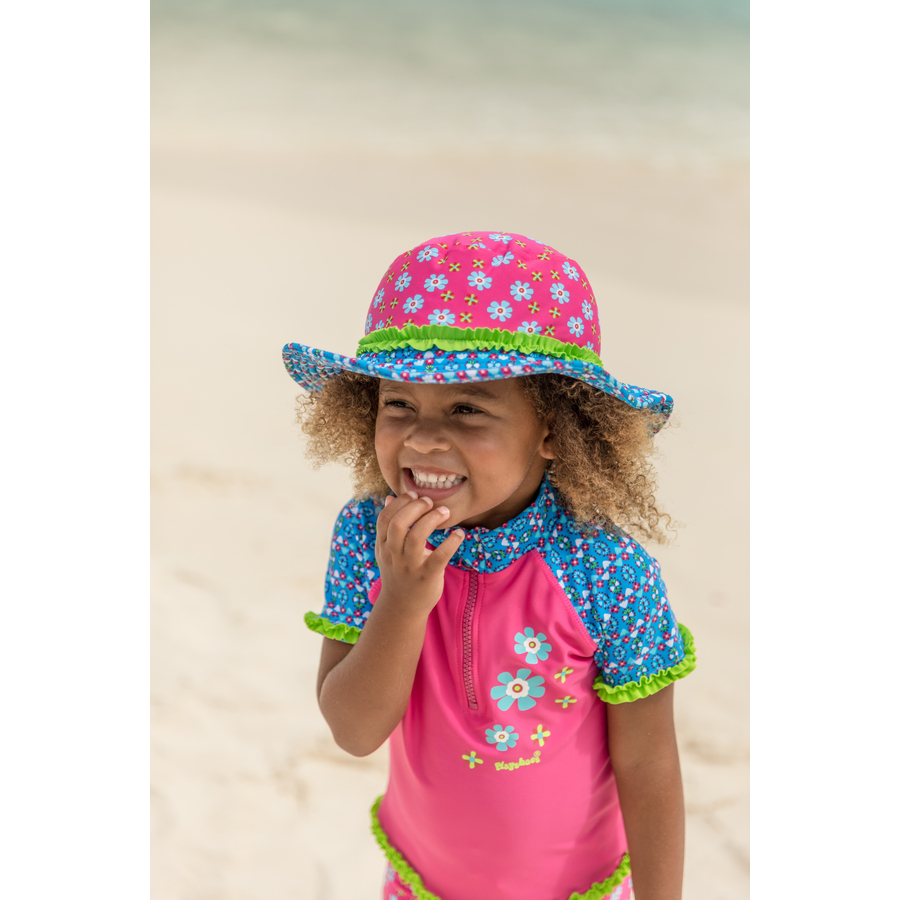 Dettagli del prodotto: Cappello da sole con fiori Allover print Tesa larga e protettiva con volant Materiale ad asciugatura rapida Protezione UV 50+ secondo EN 13758-1 (test dell'Istituto Hohenstein n. 15.1.10.0286) Oeko-Tex Standard 100 Classe 1 (test dell'Istituto Hohenstein n. 11.0.86164) Materiale e cura: Materiale: 82% poliammide, 18% elastan Lavabile fino a 30°C Non adatto all'asciugatura in asciugatrice
