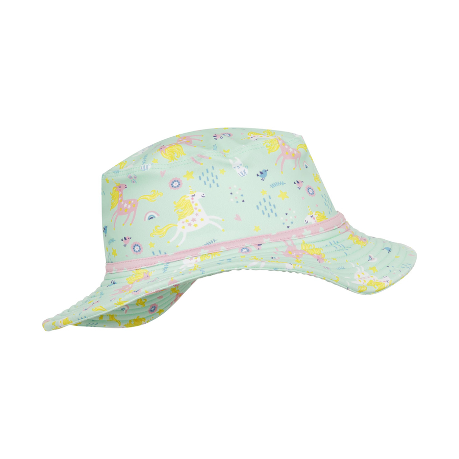 Dettagli del prodotto: Cappello da sole con unicorno Allover print Tesa larga e protettiva Materiale ad asciugatura rapida Protezione UV 50+ secondo EN 13758-1 (test dell'Istituto Hohenstein n. 15.1.10.0286) Oeko-Tex Standard 100 Classe 1 (test dell'Istituto Hohenstein n. 11.0.86164) Materiale e cura: Materiale: 82% poliammide, 18% elastan Lavabile fino a 30°C Non adatto all'asciugatura in asciugatrice