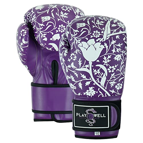 Playwell Gamma per principianti: guanti da combattimento da boxe da donna, ragazze viola fiore serie (6 once)