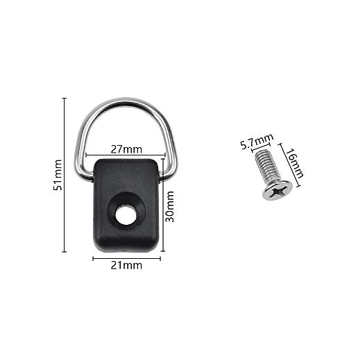 Confezione e dimensioni: contiene 10 anelli a D per il sartiame del kayak e 10 viti. La dimensione dell'anello a D è 51 * 21 mm. La dimensione della vite è 16 * 5,7 mm.