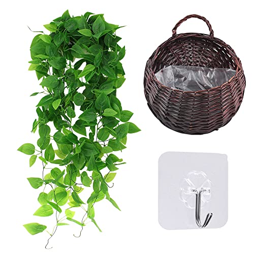 PLCatis Piante Artificiali Sospese con Cestino 3.6FT in Plastica Cestino Pensile di Edera Finta Lussureggiante e Realistico Finta Edera Rampicante per Decorazioni Balconi Parete Porta