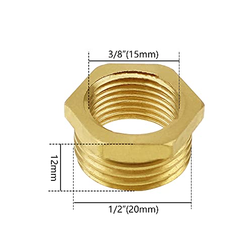 【Confezione e dimensioni】Ottieni 4 riduttori in ottone. Il diametro della filettatura esterna è di 1/2 pollice (20 mm) e il diametro della filettatura interna è di 3/8 pollici (15 mm).