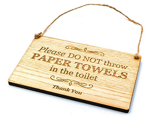 Please Do Not Put Paper Towel in WC, bagno, cartello, avviso, informazioni - nero e bianco/cenere impiallacciatura/compensato, frassino impiallacciato, Nero e bianco o legno., 145mm x 90