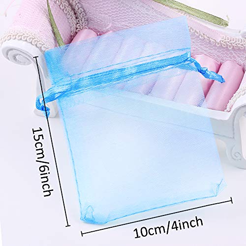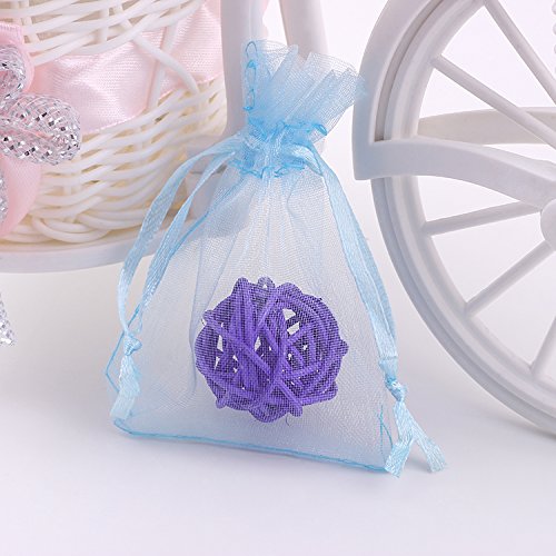 PLECUPE 100 pezzi Sacchetti Confetti, Sacchetti Organza 10x15 cm, Sacchetti Regalo, Organza con Coulisse, Saccgetti Portaconfetti Borse Gioielli Sacchetto di Caramelle - Blu#3