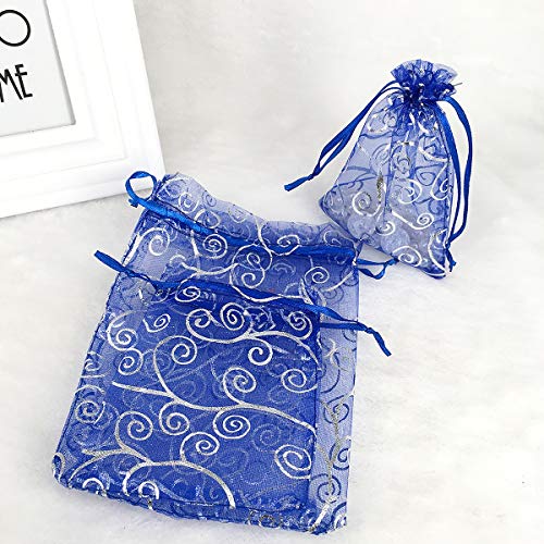 PLECUPE 100 Pezzi Trasparente Organza Bag Sacchetti Bustine, 8x11cm Sacchettino Sacchetto Coulisse Porta Sacchettini di Matrimonio - Argento + Blu