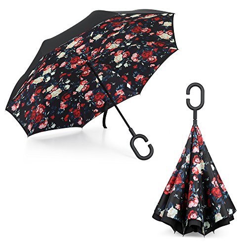 Plemo Ombrello Invertito Apertura e Chiusura al Contrario, Impugnatura Comoda a Forma C, Comodo Specialmente per Entrare Auto o per chi Portando Qualcosa a Mano