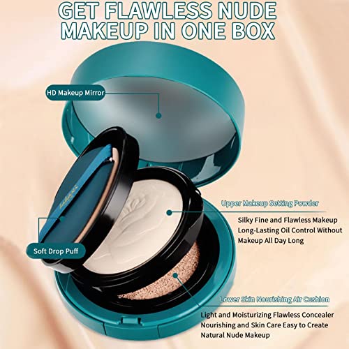 Plesuxfy Cipria compatta per Pelli grasse - 2 in 1 Skin Nuder Cushion Cipria fissante per Il Trucco a Lunga Durata - 24 Ore di Lunga Durata, Copre Leggermente Il Viso e Crea Una Crema BB