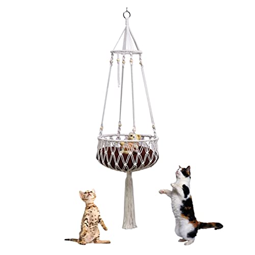 Plesuxfy Letto Amaca Gatto Boho - Altalena per Gatti con Amaca Nido per Gatti macramè Confortevole e Resistente,Amache Altalena per Gatti per Interni ed Esterni Gattino Che Dorme Arrampicata Giochi