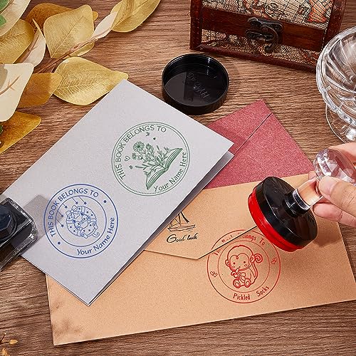 PLIGREAT Timbro personalizzato, timbro per biblioteca con testo personalizzato, timbro con nome e indirizzo personalizzati, timbro autoinchiostrante per libro insegnante matrimonio ufficio, 16 disegni
