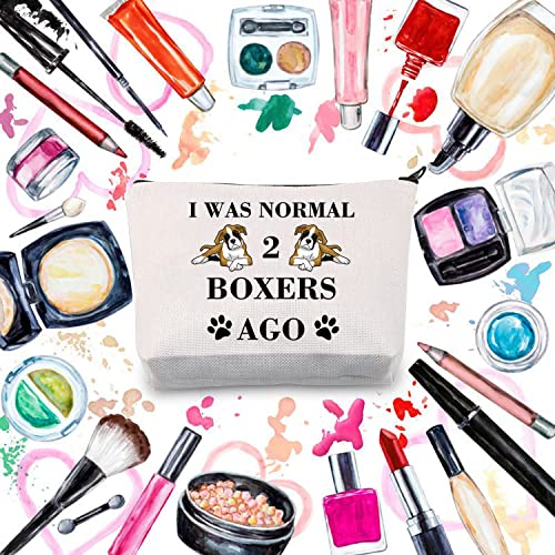 PLITI Boxer Dog Makeup Bag Boxer Dog Amante Regalo Cane Mamma Sacchetto Cosmetico I was Normal 2 Boxers Ago Zipper Pouch, 2 Pugili Fa U, moda