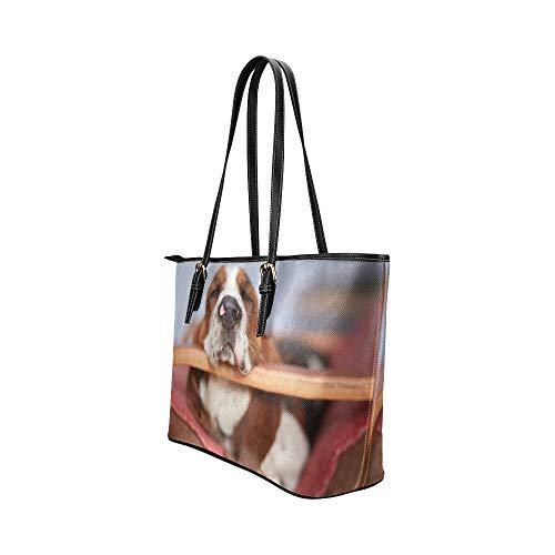 Plsdx Carina Tan Basset bianco sul divano in pelle grande portatile manico a mano borse Totes borse borse a tracolla zippata Shopping Bag Bag Organizer per Lady Girls Womens