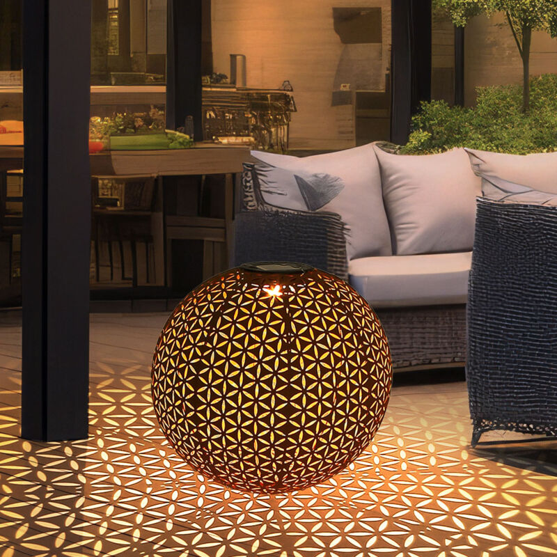 Descrizione Questa lampada solare in metallo color ruggine potrebbe essere il prossimo momento clou nel tuo spazio esterno. La lampada solare rotonda (27 cm) con un'altezza di 38 cm colpisce per il bellissimo motivo perforato, per cui la luce bianca calda 3000K entra in scena. Grazie alle celle solari integrate, che caricano una batteria incorporata, questa lampada può essere posizionata senza connessione elettrica. Questa torcia si ricarica durante il giorno ed emette la luce immagazzinata fino a 8 ore quando fa buio. Grazie alla classe di protezione IP44, la lampada è protetta dagli spruzzi d'acqua ed è quindi predestinata per l'uso esterno. La lampadina a LED è già installata in modo permanente nella lampada. Particolare lampada • Tipo di lampada: lampada solare • Materiale: metallo • Colore: color ruggine • Modelli/tagli fustellati • con picchetto • Autonomia: 6-8 ore • Interruttore • Batteria inclusa: 1xAA Ni-Mh 300mAh • Grado di protezione: IP44 • Diametro x altezza in cm: 27x38