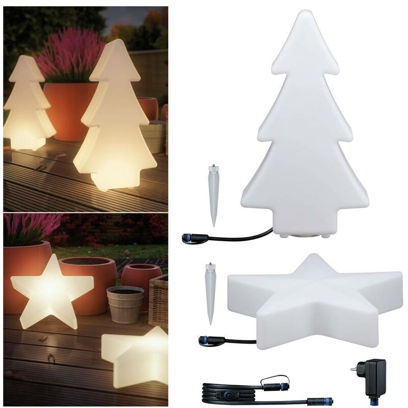 Plug & Shine Natale Bundle Tree & Stella - 3000K IP44 / 67/68 tra cui l'albero oggetto leggero, alimentatore e cavo il tappo decorativo & Shine albero di Natale Bundle & Stern compensati vostro giardino nella giusta atmosfera. Esso include un plug & Shine trasformatori, cavi, e l'albero di Natale illuminato Prodotti Plug & Shine Albero e Plug & Shine Star. Un decorativi in eye-catcher in aiuole, in terrazza o balcone. Illuminando il vostro spazio esterno secondo i vostri desideri: dal muro sul terrazzo al giardino sentieri e piante Tischleuchtenfuß con picchetto per il fissaggio nel terreno adatto come luci di Natale temperatura di colore: 3000K - bianco caldo combinato e con tutte le luci ed accessori di serie spina lustro protezione IP: IP67 - protetto da immersione temporanea Caratteristiche: dimensioni in mm: peso in grammi: 10