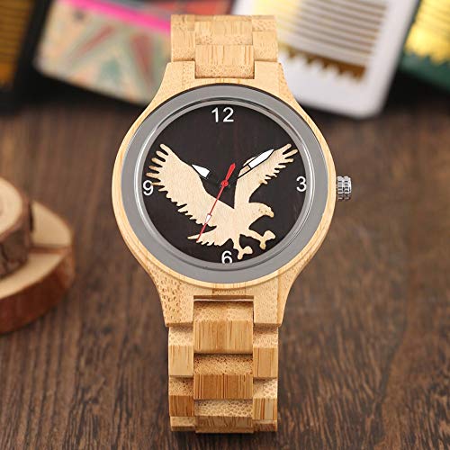 PLUIEX Orologio in Legno Orologio in Legno di Ebano Nero Orologio da Polso da Uomo con Design retrò 3D Aquila, Orologio da Polso Regolabile in bambù, in Legno, Legno di bambù