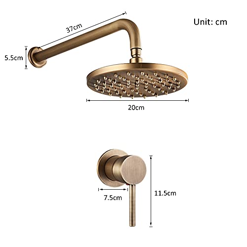 PLUIEX Sistema Doccia Doccia a Pioggia a Incasso in Ottone Antico Doccia a Pioggia con Maniglie Doppie Miscelatore monocomando per Acqua Calda e Fredda Miscelatore per Vasca da Bagno, Una Maniglia a