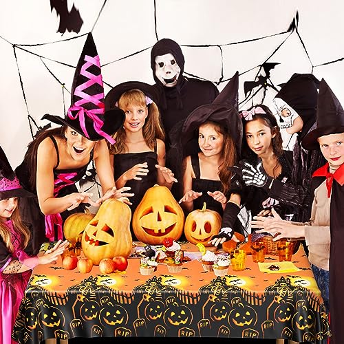 PLULON 2Pack Tovaglie di Halloween 137 x 274 cm Zucca Pipistrello Scheletro Teschio Tovaglia di Plastica Copritavolo di Halloween Felice per Decorazioni per la Tavola Cena Forniture Feste Halloween