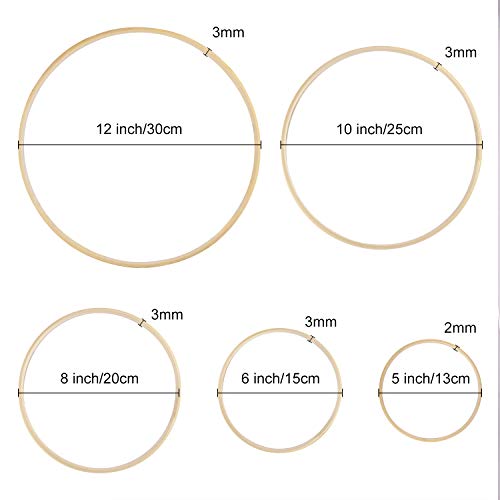 PLULON 15 Pz 5 Misure (13 cm/15 cm/20 cm/25 cm/30 cm) Anelli di Legno per l'artigianato, Cerchi Floreali Anelli ghirlande Anelli a Cerchio macramè per la Corona Nuziale Fai da Te