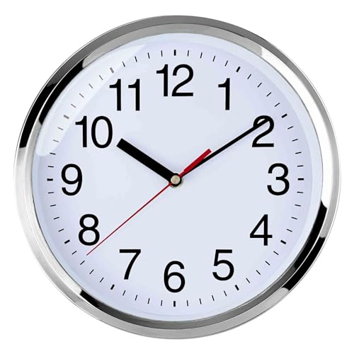 Plumeet 25cm Orologio da Muro, Silenzioso con Numero Grandi E Graziosi e Movimento Digitale Senza Ticchettio, Orologi da Parete Design Moderno Ottimo per la Camera da Letto e la Cucina (Cromo)