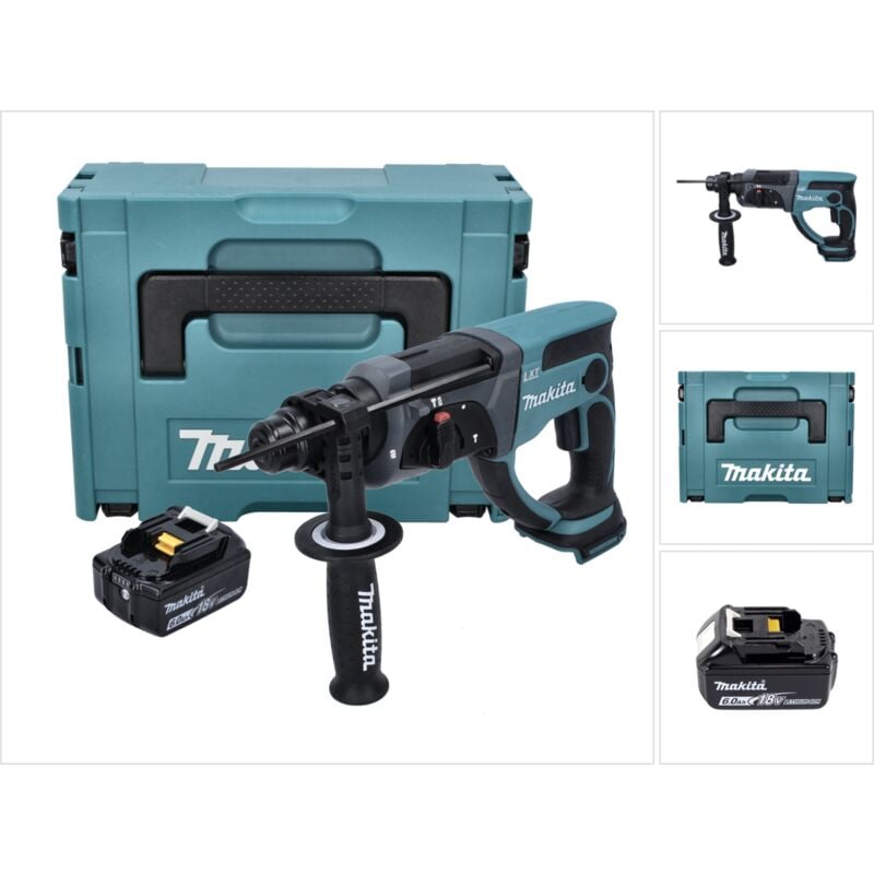 Contenuto della fornitura: - 1x trapano a batteria Makita DHR 202 18 V - 1x Impugnatura ausiliaria - 1x arresto di profondità - 1x batteria Makita BL 1860 B 18V 6.0Ah - 1x Valigetta Makita Makpac - 1x Inserto universale - senza caricabatterie Caratteristiche del prodotto: Il trapano a batteria 18V DHR 202 di Makita convince per le sue elevate prestazioni nonostante la compattezza della macchina. Il martello combinato è dotato di una silenziosa frizione di disinnesto e il motore può essere azionato ad alta velocità per un rapido avanzamento del lavoro. La maneggevolezza è ottimizzata dall'impugnatura con arresto di profondità e presa gommata, che garantisce una presa sicura e un lavoro confortevole. La batteria Makita BL 1840 da 4 Ah offre la massima durata con un peso molto ridotto. Inoltre, la batteria ha una durata massima grazie alla bassa protezione contro scariche spontanee, cortocircuiti, sovratensione e surriscaldamento. Specifiche tecniche: Produttore: Makita Denominazione del