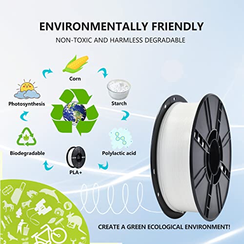 Materiale ecologico: PLA+ è realizzato in PLA modificato, con elevata resistenza e tenacità. Biodegradabile, ecologico, non tossico, inodore e privo di sostanze potenzialmente pericolose. La materia prima dell'amido è derivata da risorse vegetali rinnovabili.