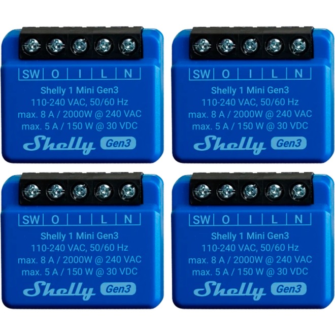 Il Shelly 1 Mini Gen3 rende ancora più facile trasformare gli elettrodomestici tradizionali in dispositivi intelligenti. Grazie alla sua capacità fino a 8 ampere, è ottimo per l''uso con una varietà di dispositivi - dalla illuminazione alla macchina del caffè. Grazie al suo design compatto, il Shelly 1 Mini può essere facilmente installato dietro interruttori o prese senza attirare l''attenzione visiva, consentendo così di integrarlo nei sistemi Smart Home esistenti. Può essere installato direttamente in una presa o discretamente all''interno di un dispositivo, senza la necessità di cavi aggiuntivi visibili. Per controllare dispositivi più grandi, è possibile combinare il Shelly 1 Mini Gen3 con un contattore ausiliario.
