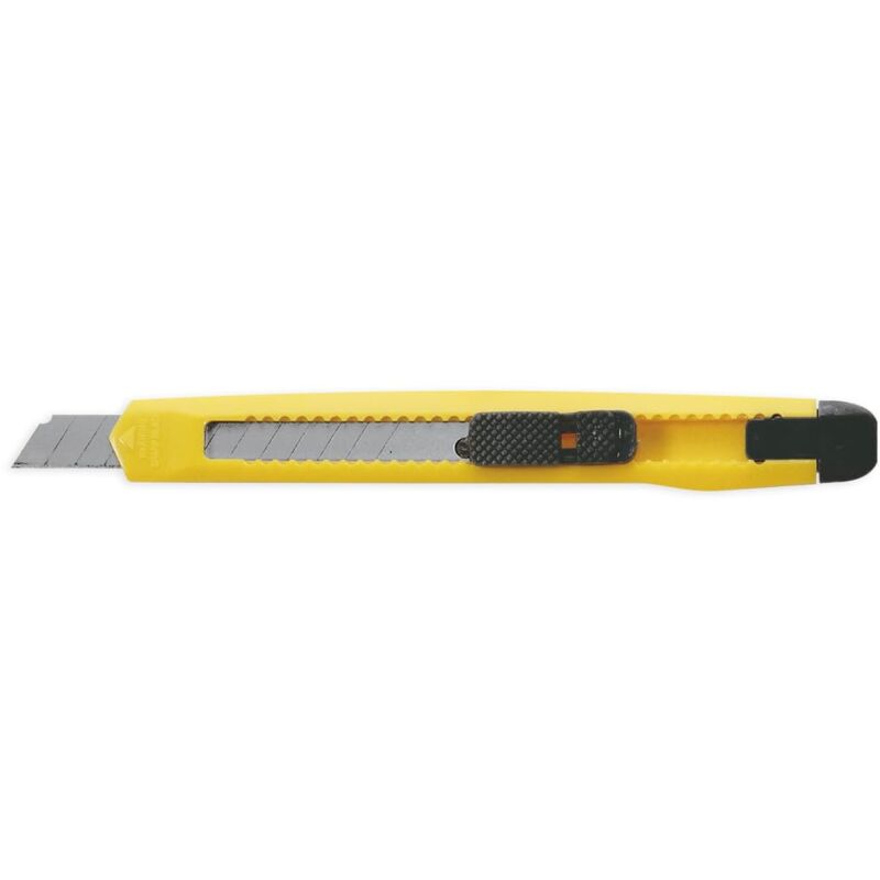 Ideale per l' uso quotidiano. cortador in metallo di alta precisione di taglio. Lame in acciaio fracturables. Sistema di blocco lama. Retractable e intercambiabile. Presentazione in blister Lunghezza: 120 mm Larghezza lama: 9 mm