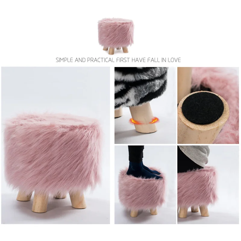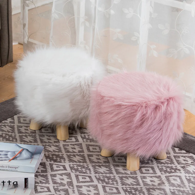 Plush Fabric Ottoman Footrest Artificial Wool Soft Sheepskin Sofa Stool Futon Home Footstool Protector Photo Props